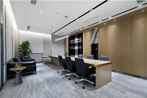 易连实业选址于陆家嘴滨江金融城内核心位置,办公氛围浓厚。自然律动、高端沉稳是易连实业的设计灵感,从而赋予空间不断释放高级气息的动力。经理室坐拥一线陆家嘴景象,什么样的设计才能配得上180°超大视野?设计师利用干净的高级灰色调与外部形成互动,设计上降低空间的活跃度,以更沉稳的氛围匹配应用场景。