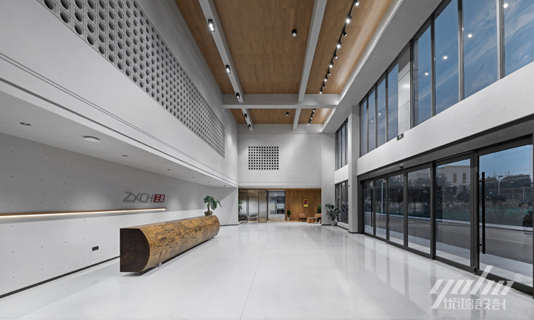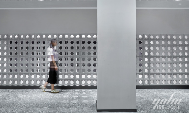 夹层区以会议室和餐厅为主,更加注重光影与艺术的融合。这里全部使用了纯净、理性的材质:微水泥艺术漆和水磨石、镂空艺术砖和原木,旨在营造一种质朴、本真的空间感受。