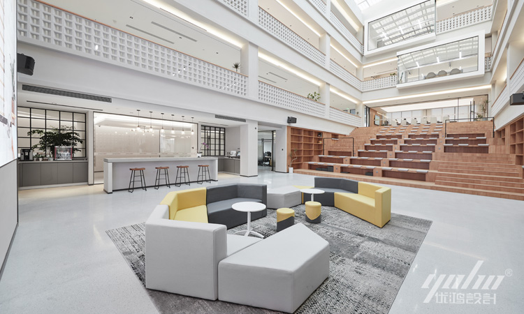 作为正星办公、社交、活动的重要场域,阶梯座位是学院风的代表性元素之一,以一种开放、和谐、活力的形式诞生。同时作为一处“功能模糊”的地带,这里闪现着鲜活的设计气息,令空间亲近而有趣。
