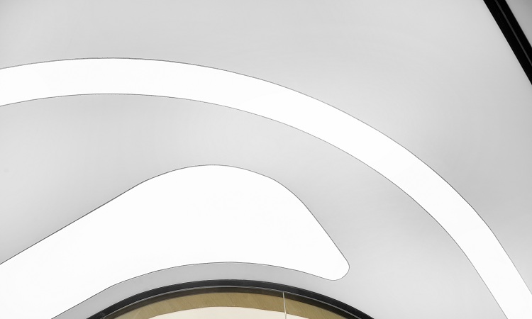 打破建筑原始空间的均匀划分,连贯的展开平面布局和动线延伸,流畅的线条、纯净的色彩、温和的材质三大元素第一时间为来者解读好博的文化内在。