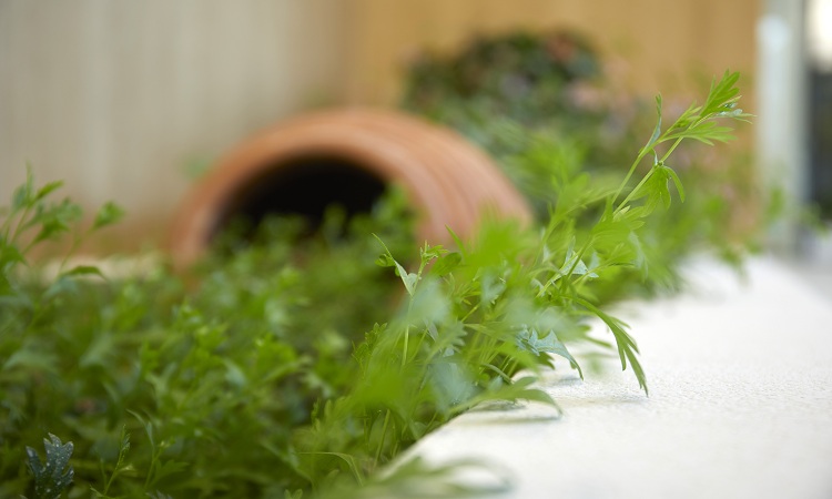 从过道区望向的水吧,明亮的蓝色亮丽澄明。设计师希望经过精心布置与重新勾勒之后,以陈列的吧台向来者传递着一种有温度的秩序感。以极简手法,运用材质特性,糅合为一份毫无喧嚣的纯粹美感,使心灵回归自在本能,追逐自然与时间的流转,专注感受无声胜有声的沉静画面。